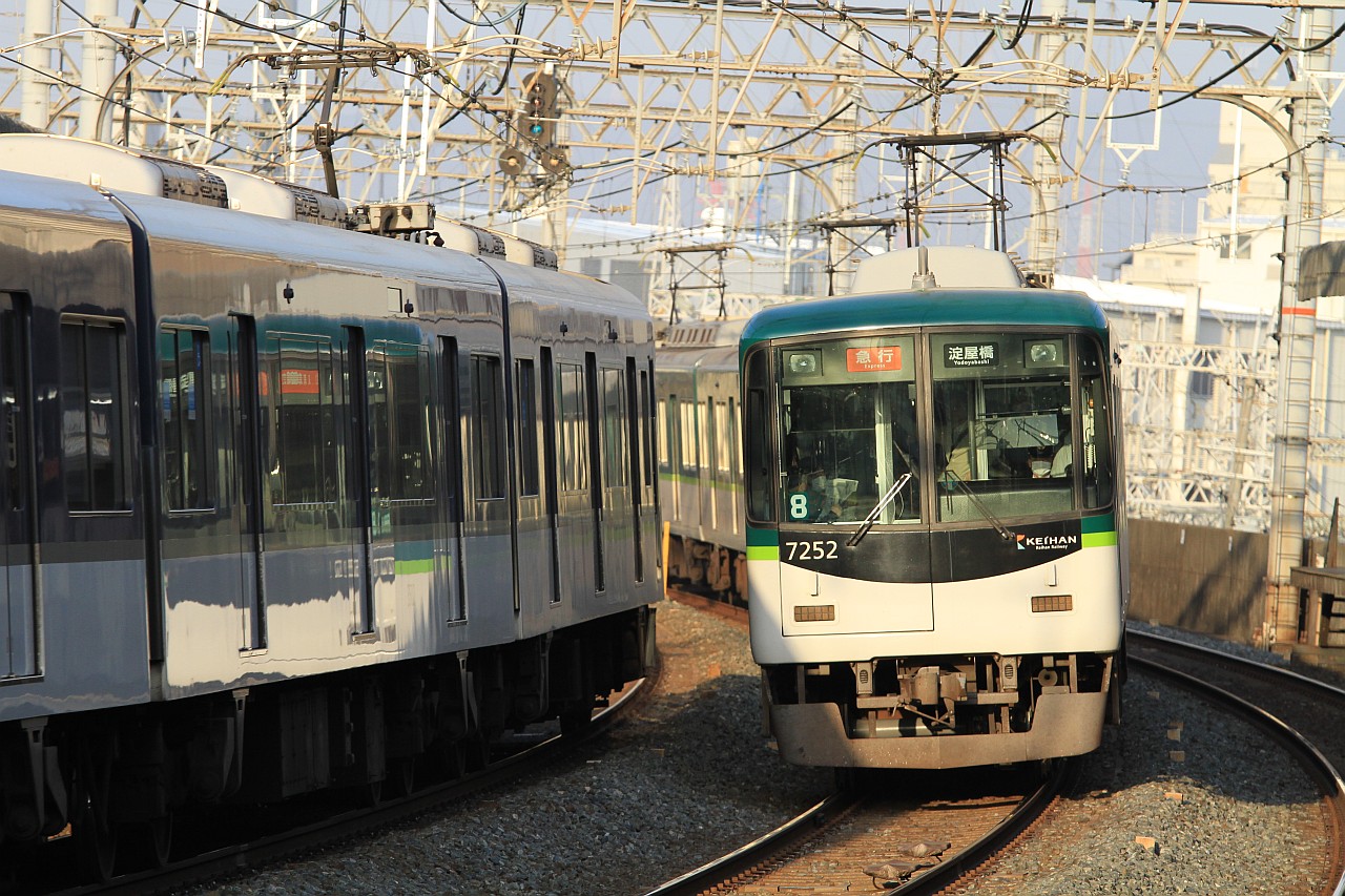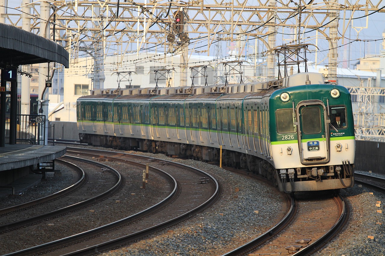 京都側が駅の手前で大きくカーブしていて、ホームからアウトカーブで狙えます。