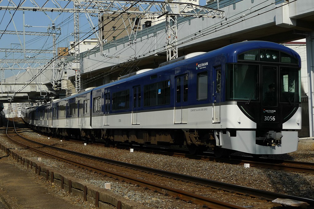 本線系統(淀屋橋発着)の上り列車は、上をクロスする線路を走ります。