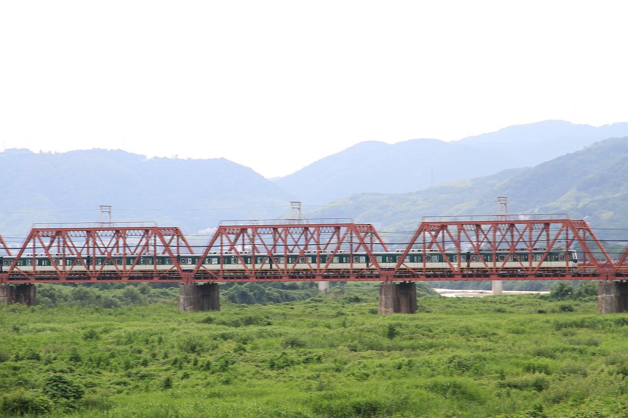木津川の鉄橋を渡る列車です。