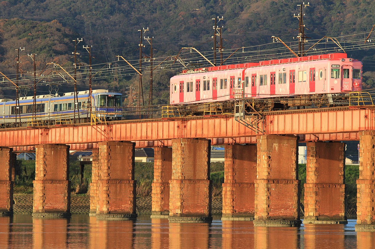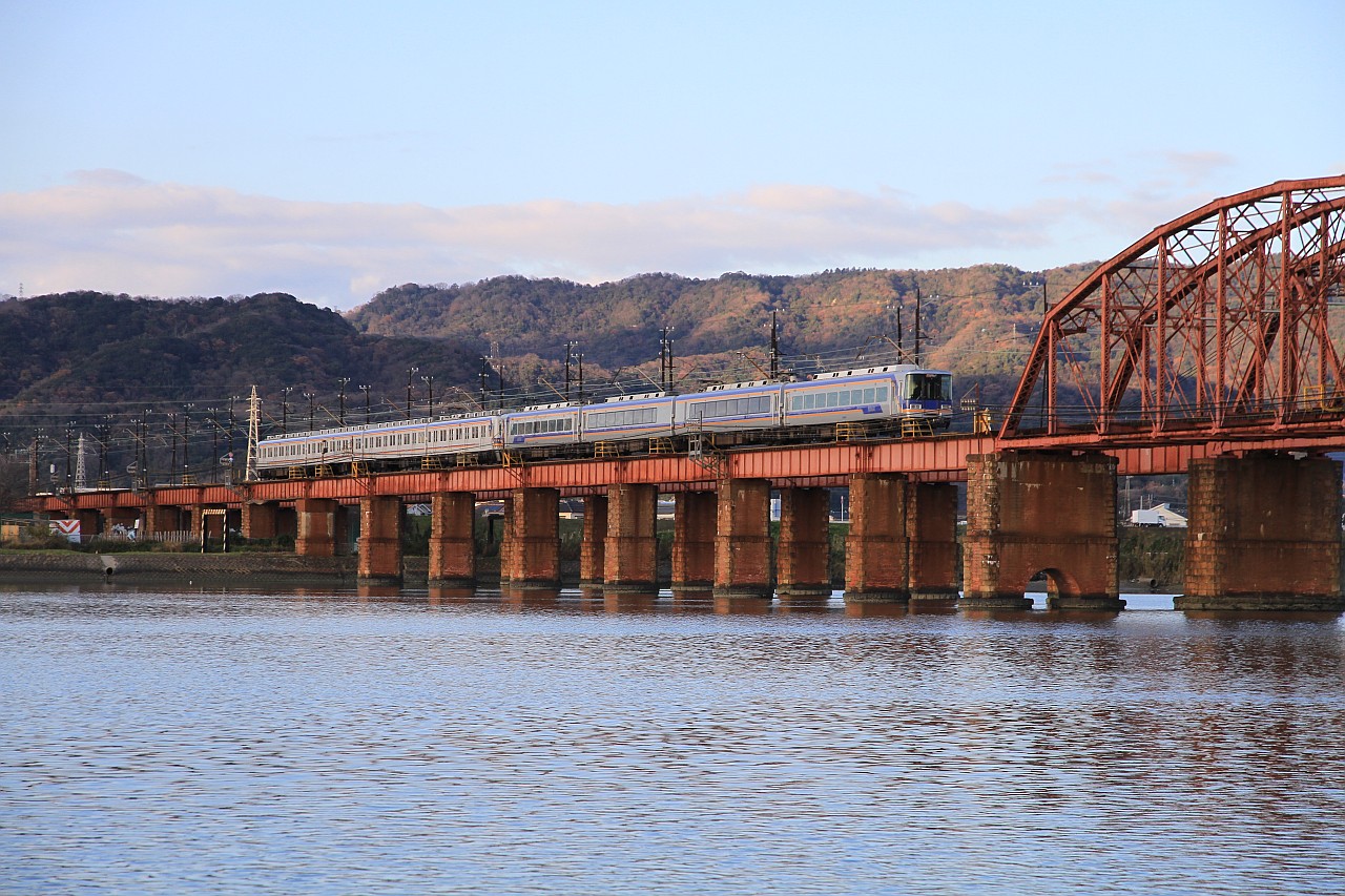 紀ノ川の鉄橋を渡る列車です。