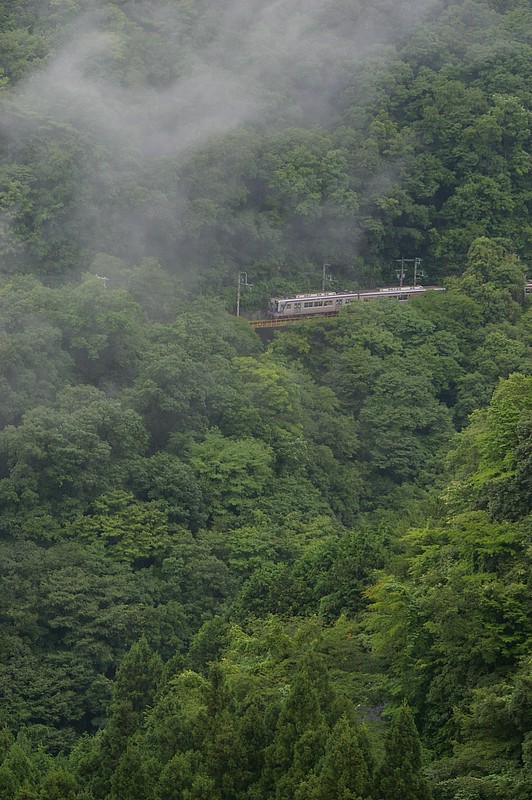 望遠レンズであれば列車のアップ、標準〜中望遠レンズでは山の中を走る列車を撮影できます。