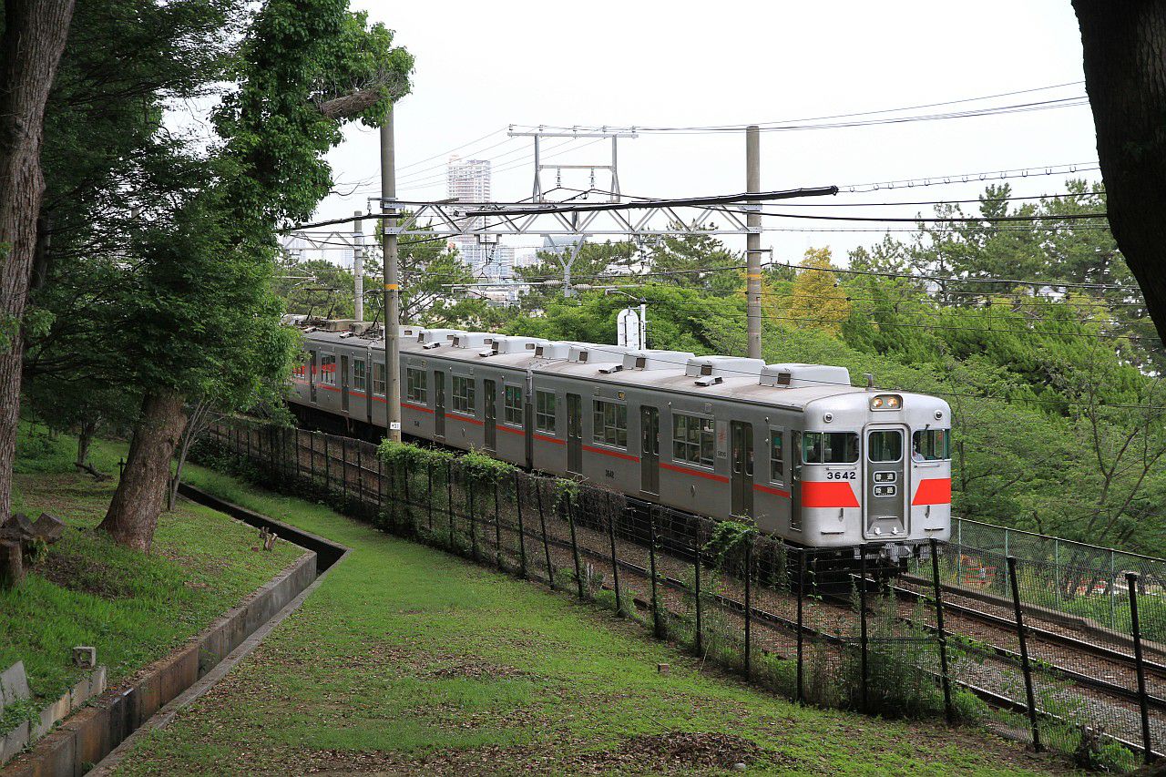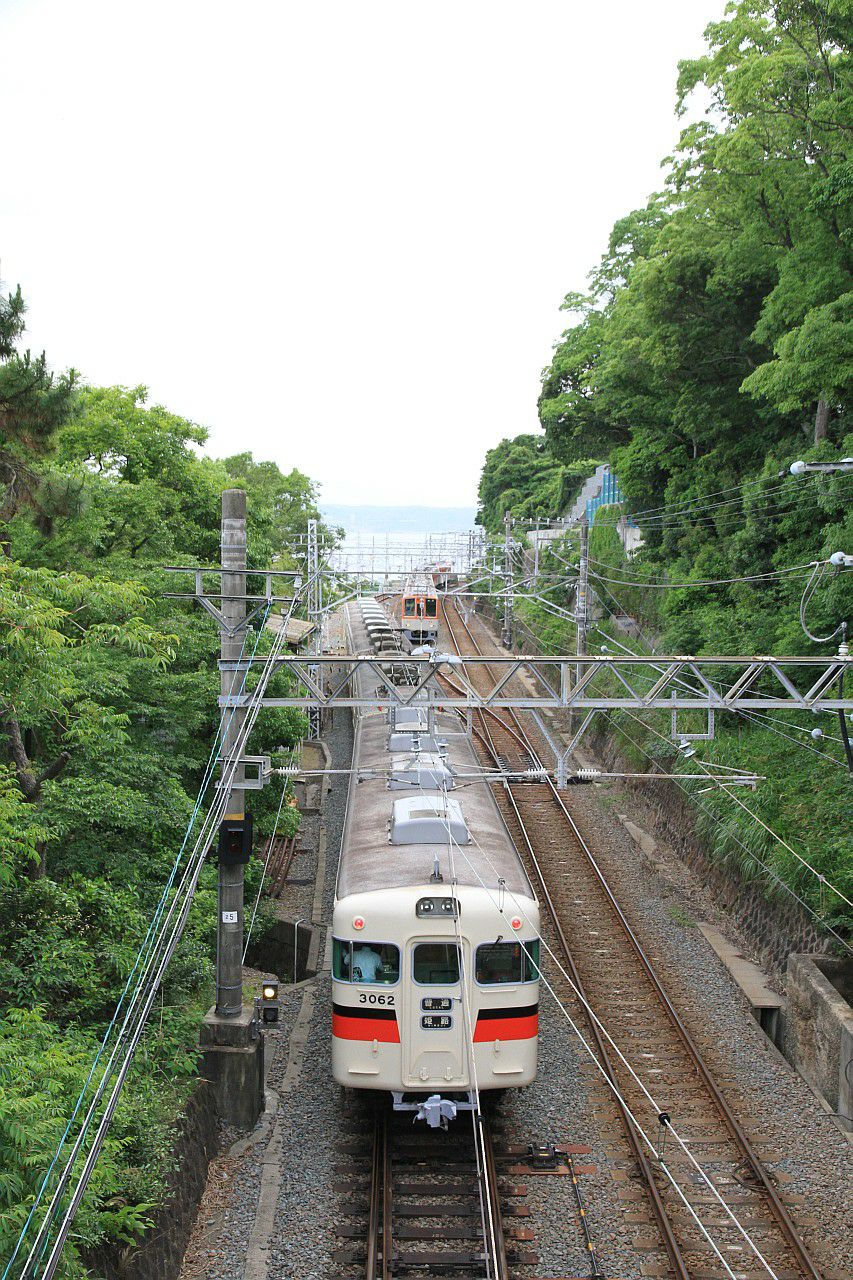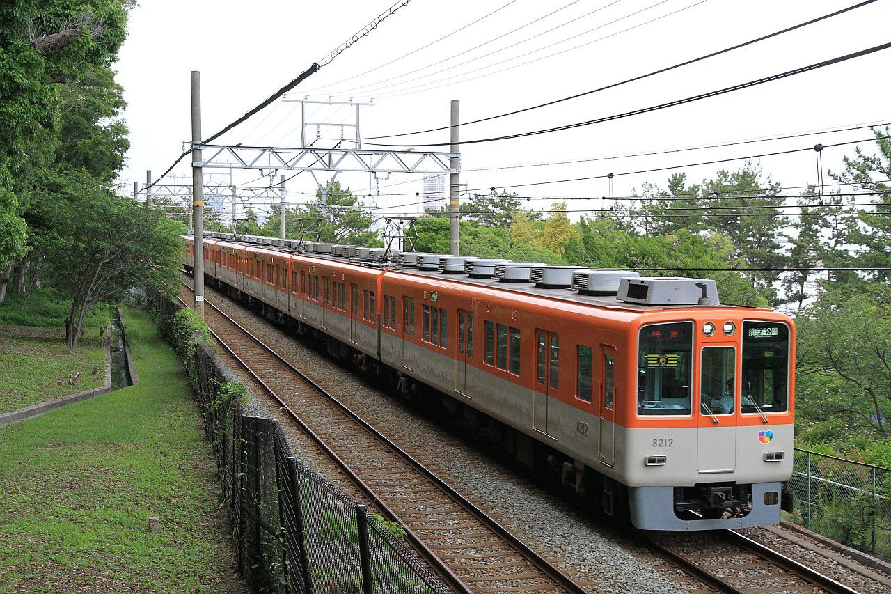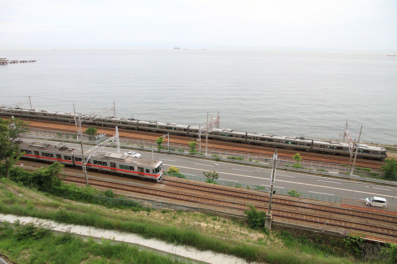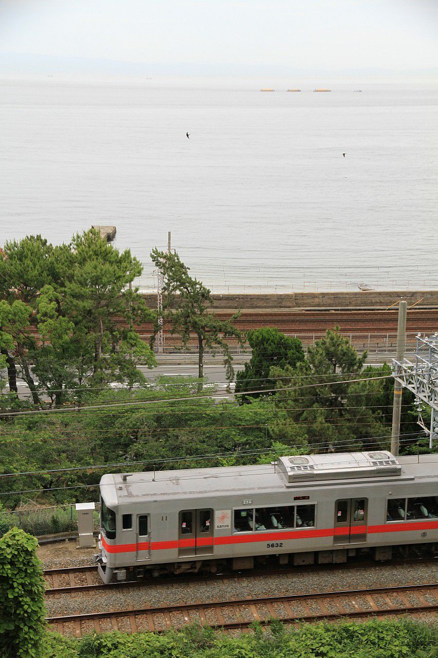 須磨浦公園付近の木々に囲まれた中を走る列車です。