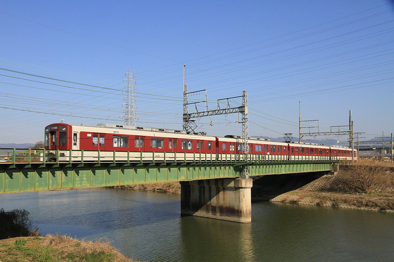 平端駅近くの佐保川の鉄橋を渡る列車です。