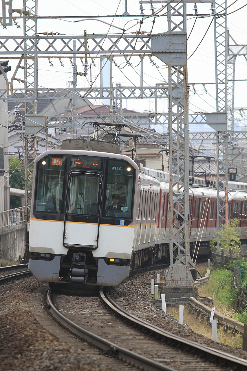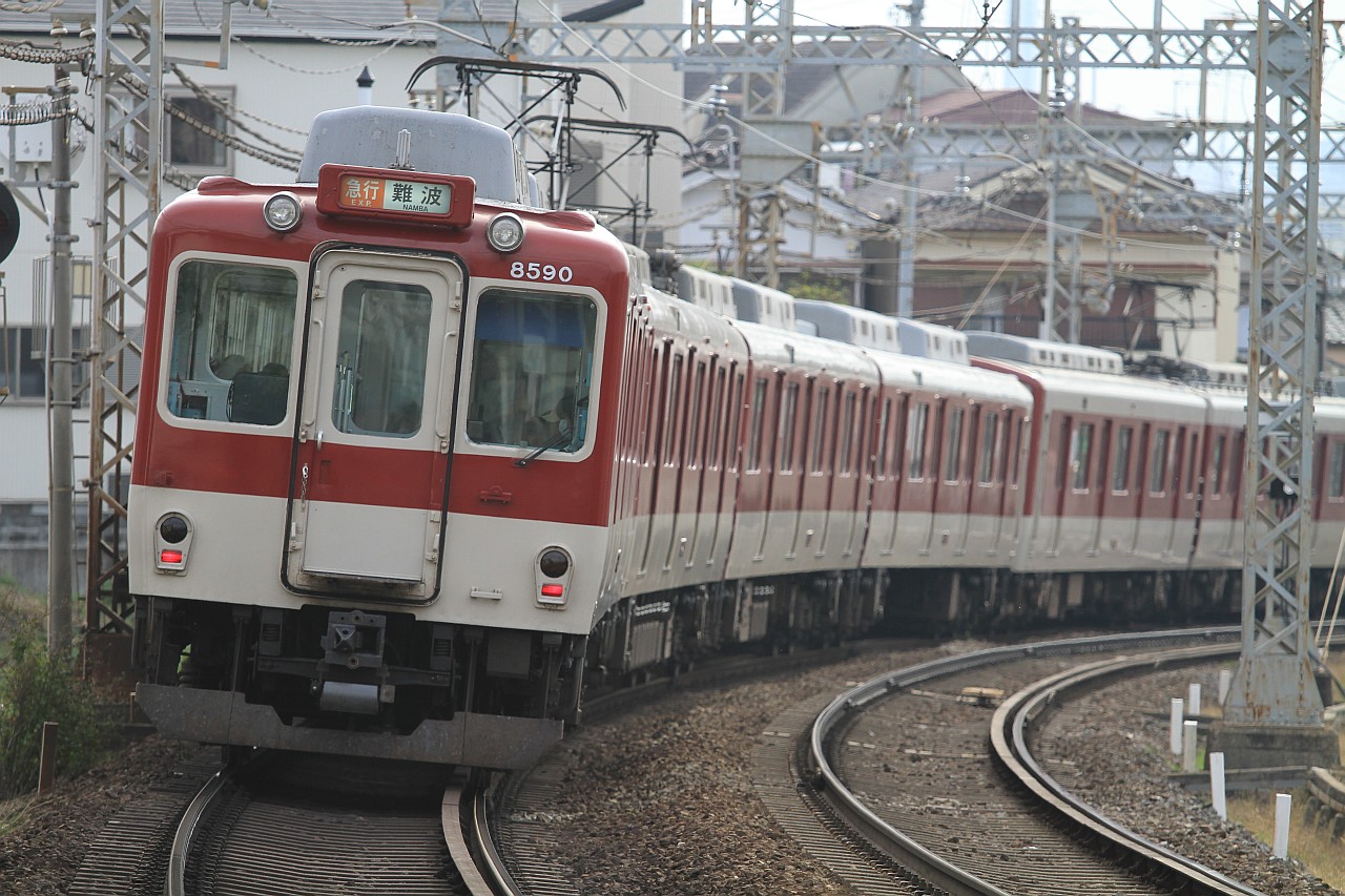 瓢箪山-枚岡間のカーブと勾配が組み合わさるポイントです。