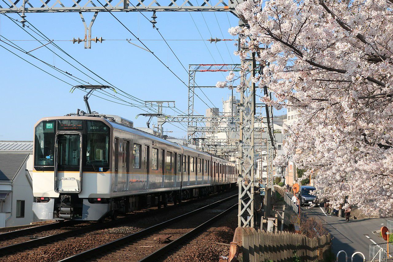 線路脇の公園に桜の木があり、桜と一緒に列車を狙うことができます。