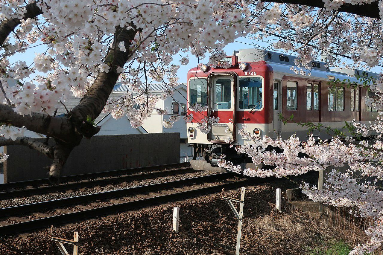 桜の花の間に列車を入れて狙うことができます。