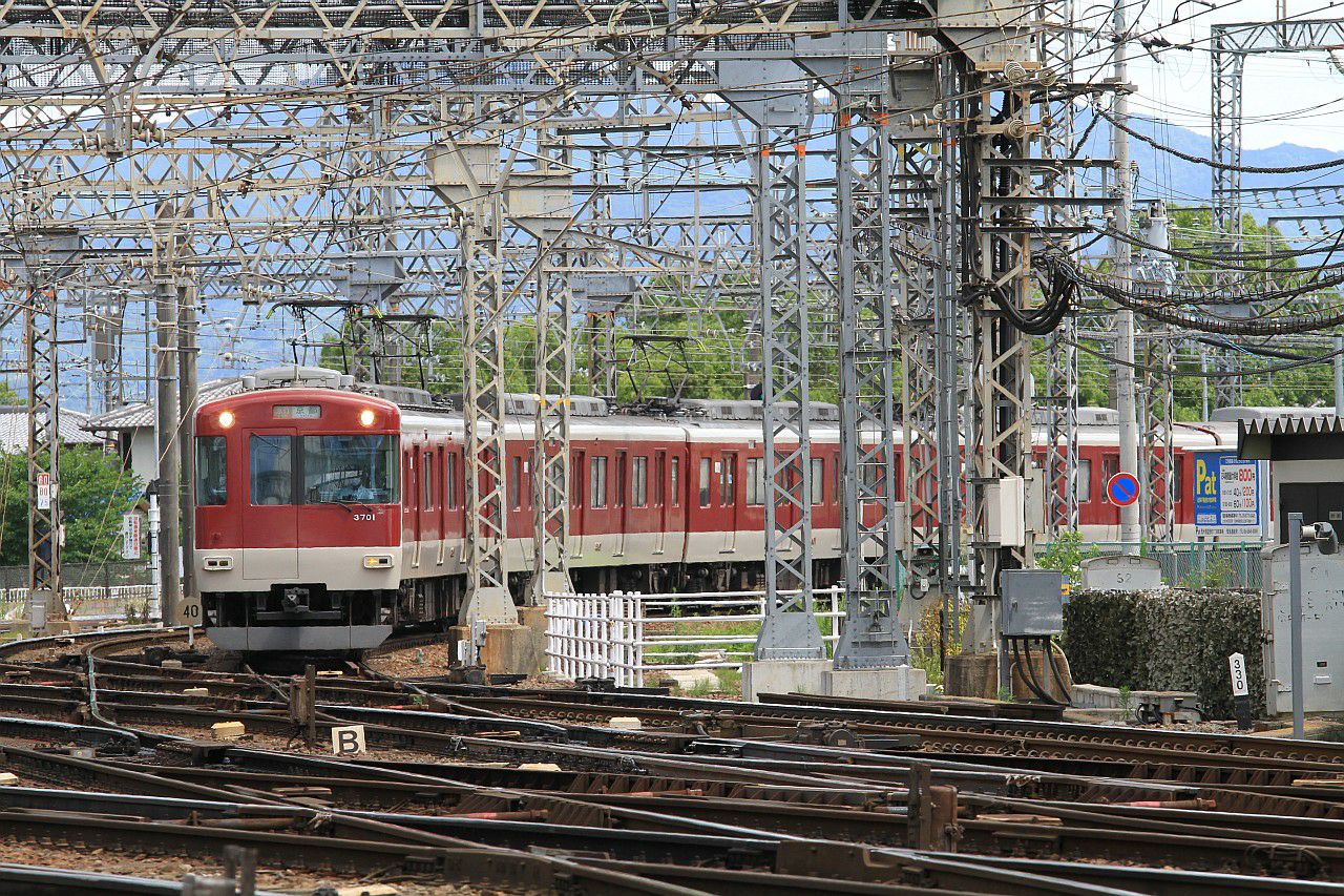 大和西大寺の分岐器を渡る列車ですが、駅のホームとは違った角度で狙うことができます。
