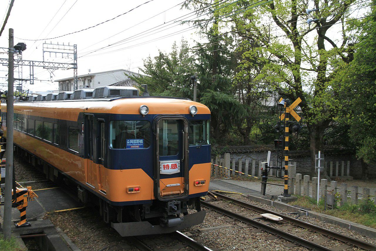 澤田八幡神社の境内にある踏切を列車が走り抜けていきます。