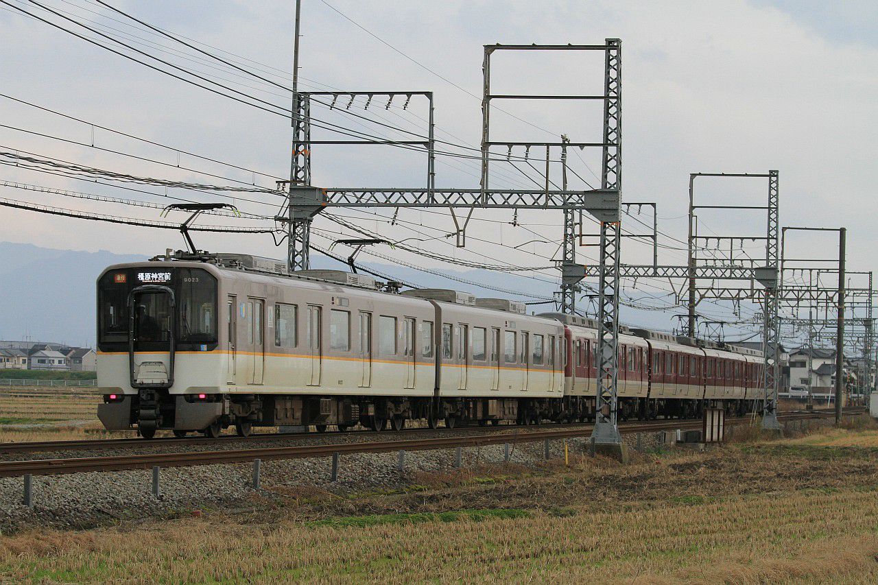 石見-田原本間の踏切近くの道路脇からの撮影です。