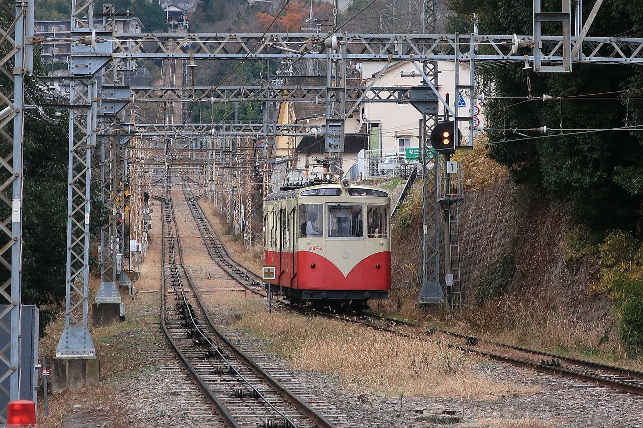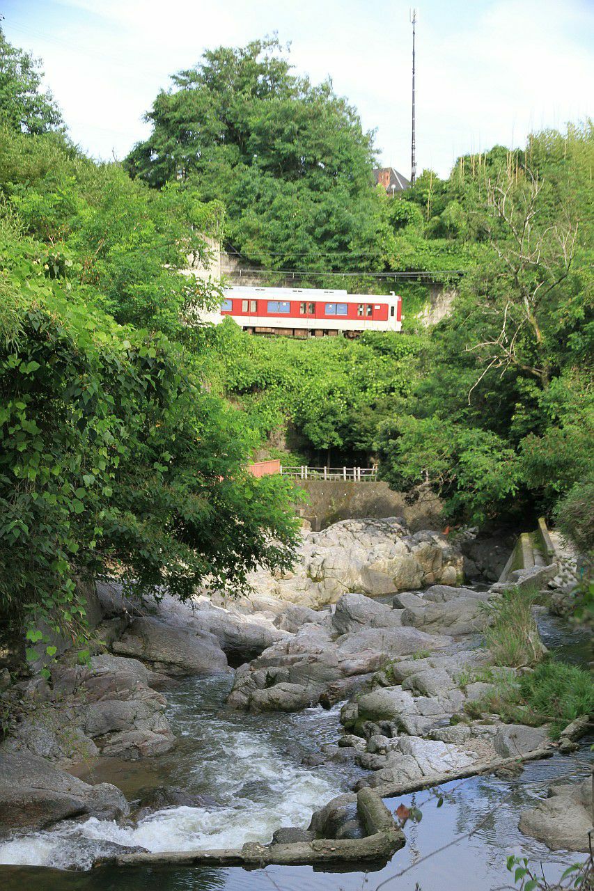 踏切脇から、勾配を降りてくる列車を狙うことができます。