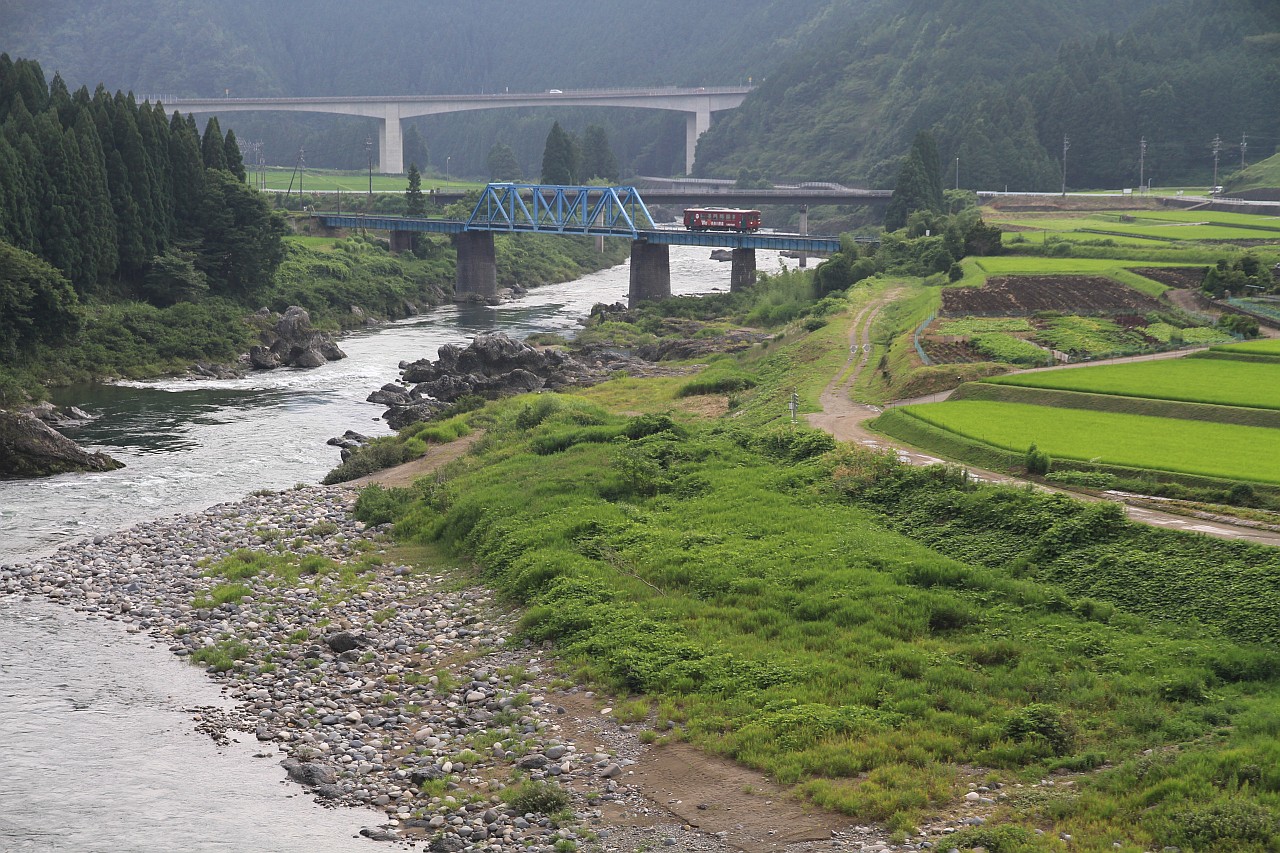 支流の小さな川を渡るため、カーブしながら鉄橋を渡るポイントです。