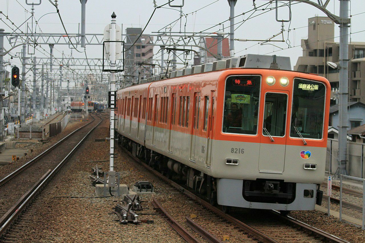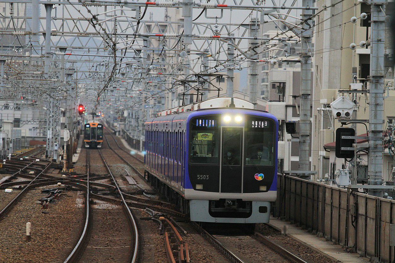 列車本数:頻繁にやって来ます。阪神車と近鉄車の両方が走っています。