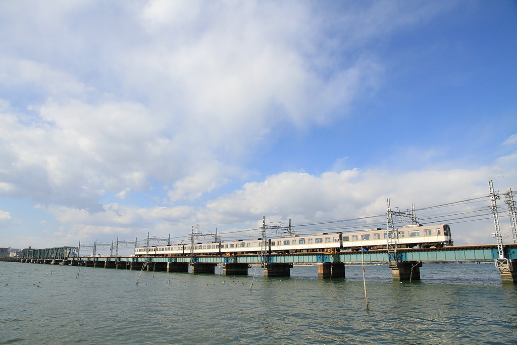 水面ぎりぎりの高さでガーダー橋が続いているため、いろいろな構図で撮影することができます。