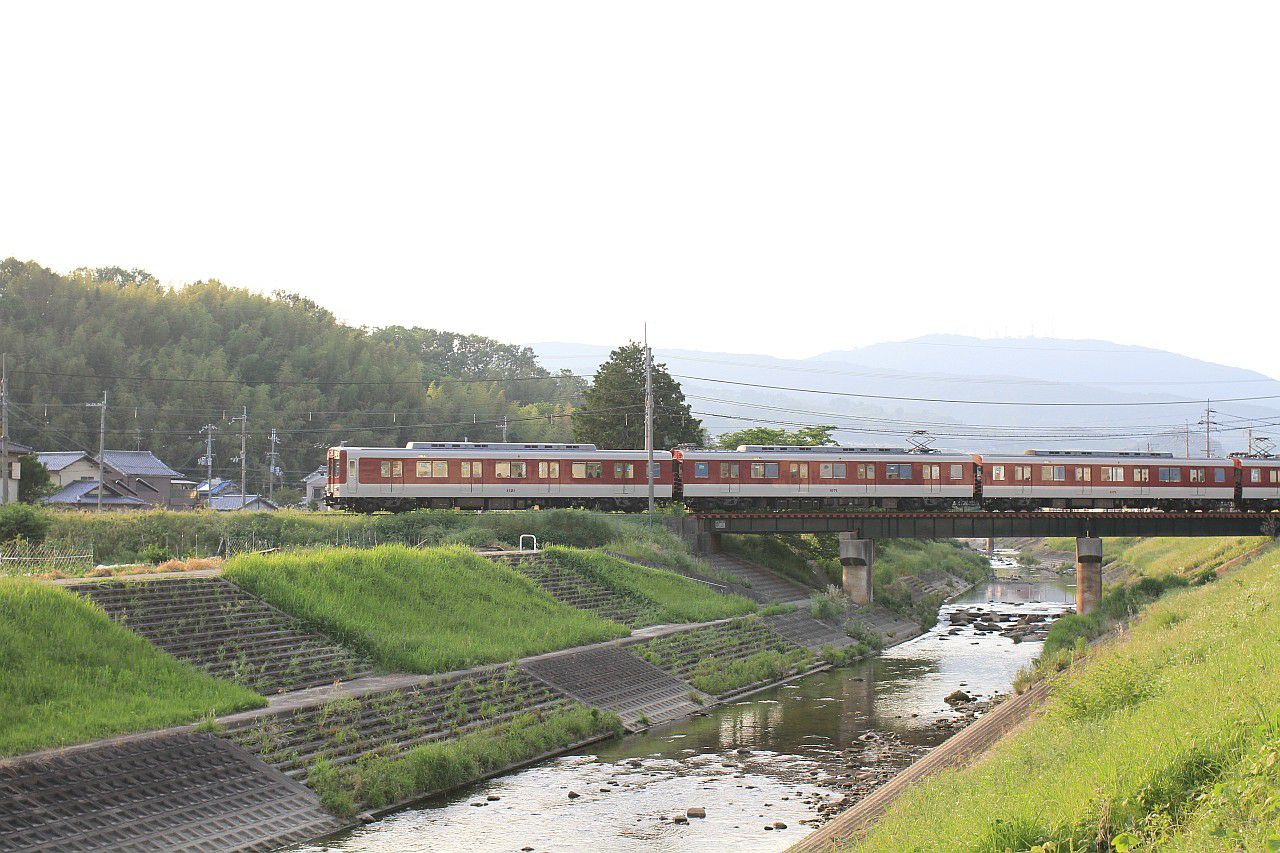 西田原本-黒田間の見通しの良い区間を走る列車です。