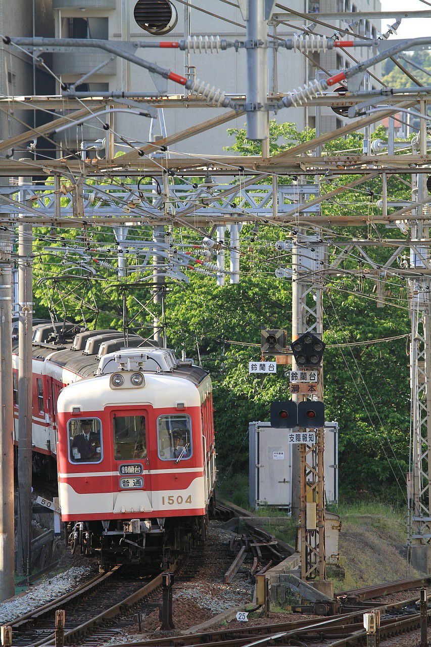 橿原線の列車がカーブしながら分岐を越えていくところを狙えます。
