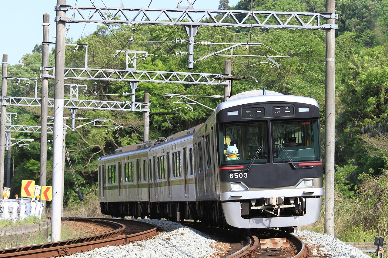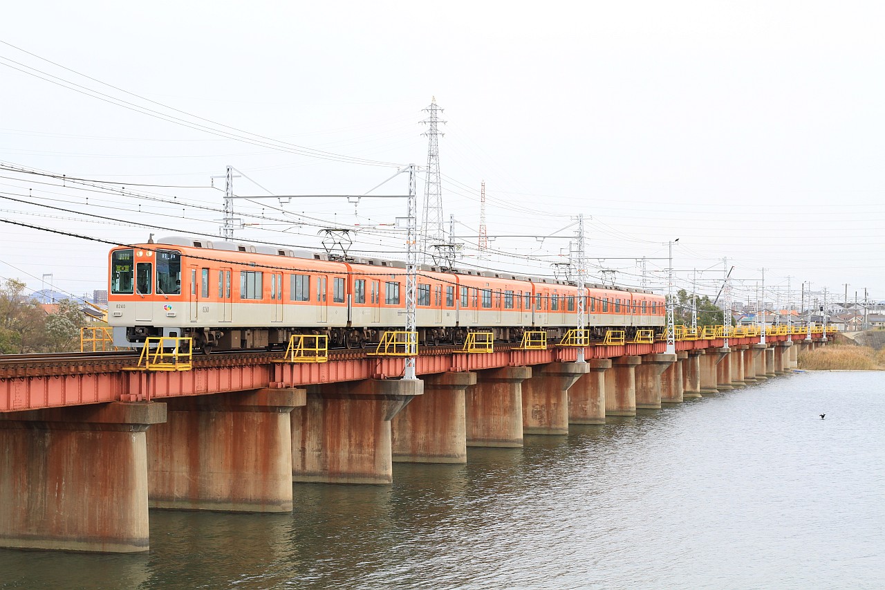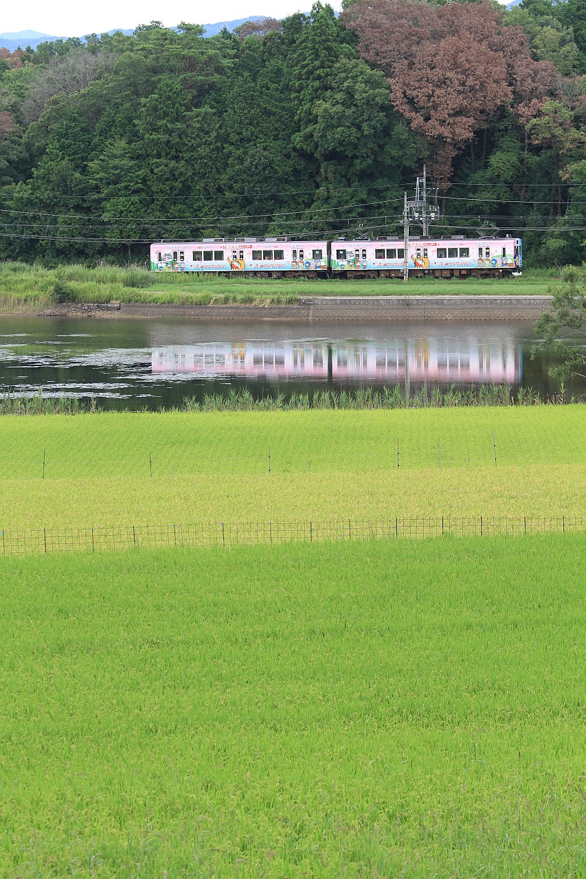 望遠レンズで圧縮すると、バックの葛城山の麓を行くような構図で切り取ることができます。