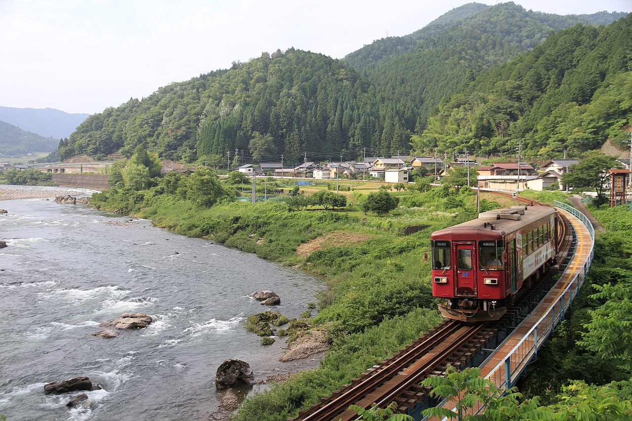 支流の小さな川を渡るため、カーブしながら鉄橋を渡るポイントです。