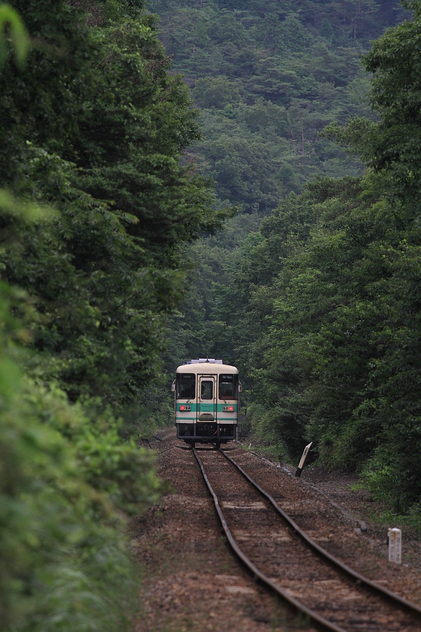 以前紹介した、トンネルを狙うポイントと同じ場所です。 極楽橋駅から紀伊神谷方面へ少し行ったところから、ホームに停車中の列車を狙えます。 山の中の終着駅の雰囲気を切り取ることができます。 列車本数:2000系/2300系が1時間に1〜2往復程度と、特急が1日数本です。 駐車スペース:滅多に車も来ないので、道幅の広いところを探して駐車可能です。