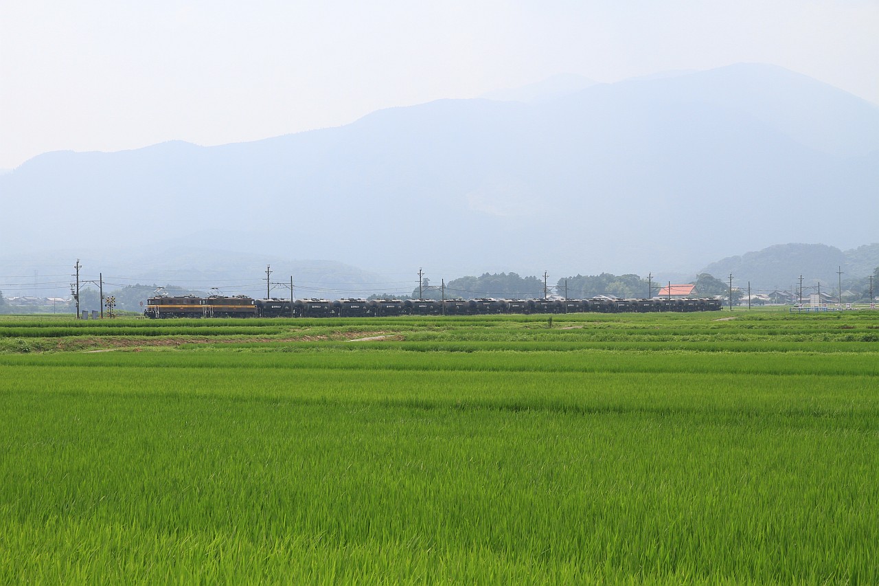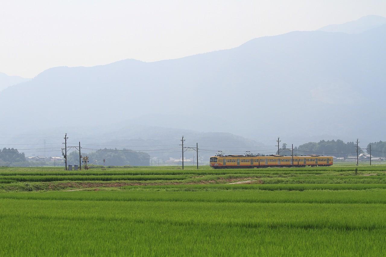 山の中を走る列車を上から狙います。