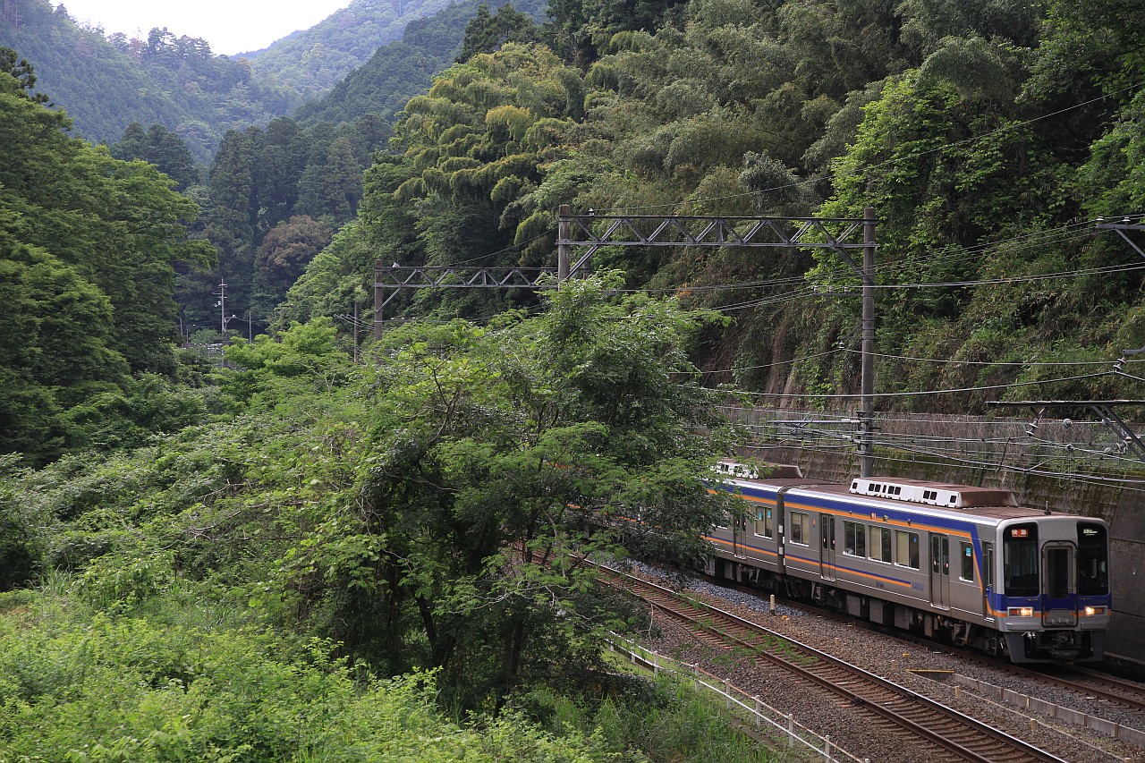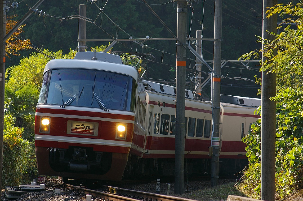 山の中の急カーブ・急勾配を登ってくるこうや号です。