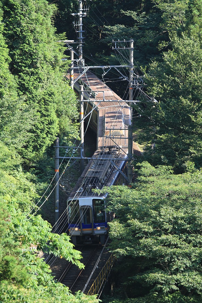 山の中を走る高野線を少し高い所から狙います。