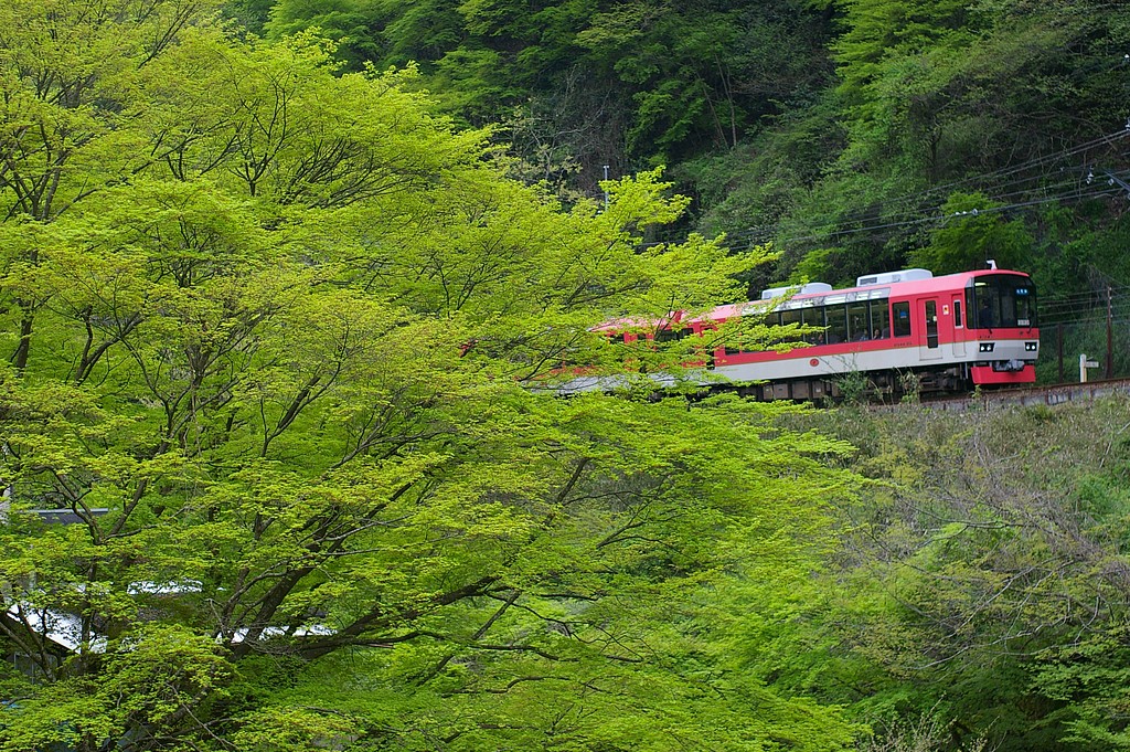 望遠レンズであれば列車のアップ、標準〜中望遠レンズでは山の中を走る列車を撮影できます。