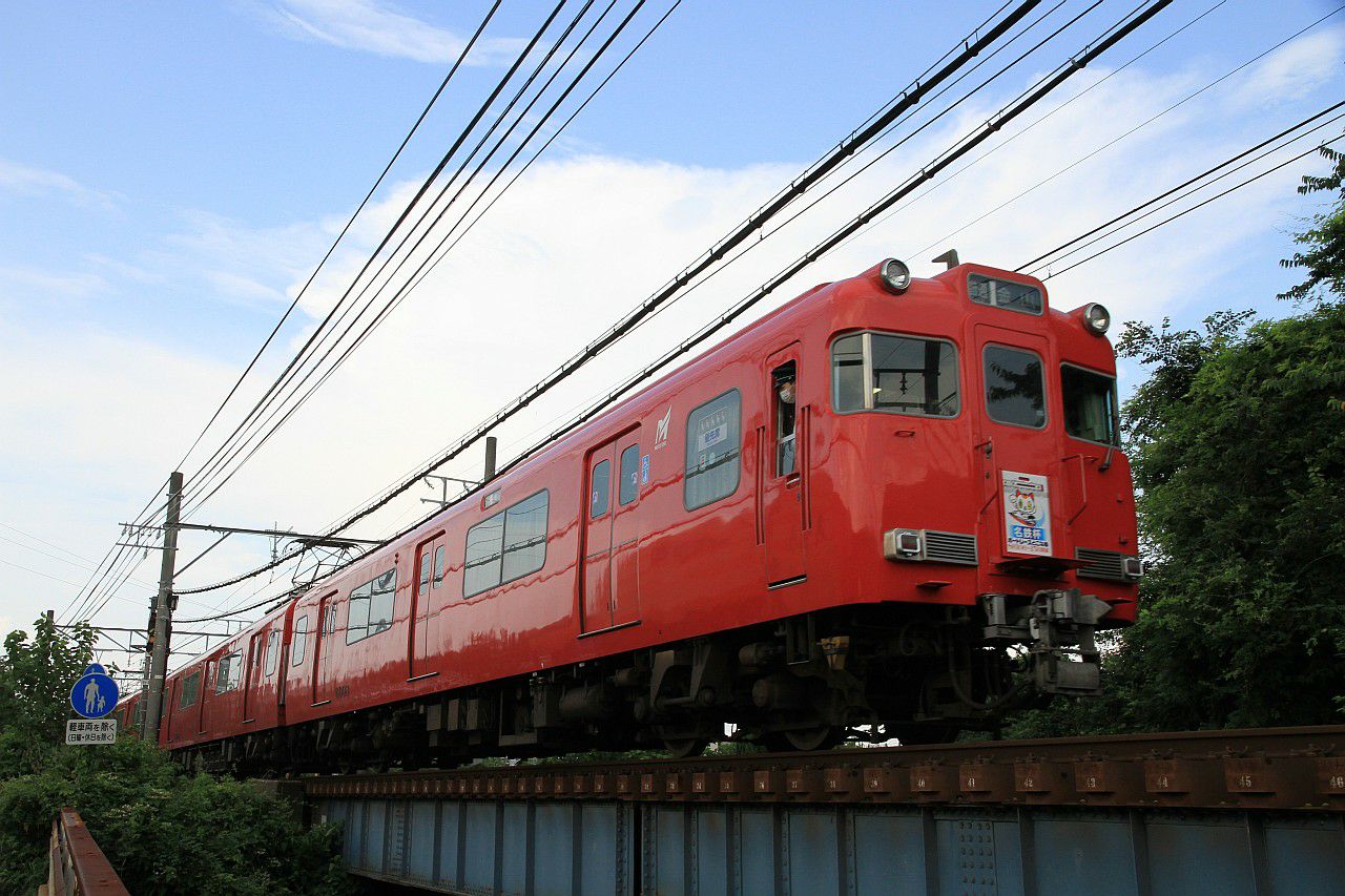 知多武豊駅近くの小さな鉄橋を渡る列車です。
